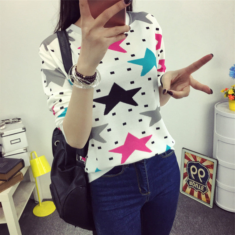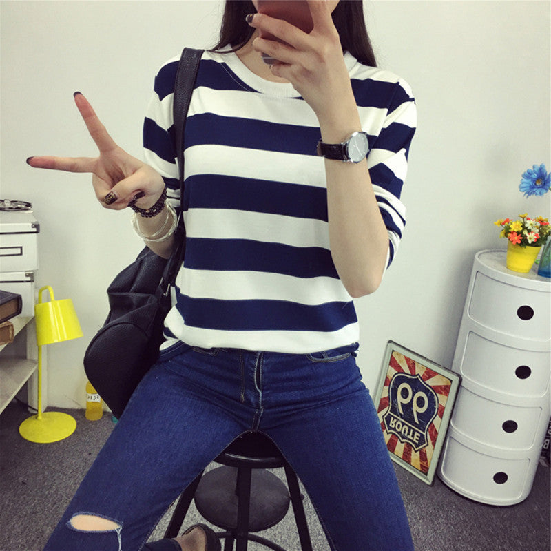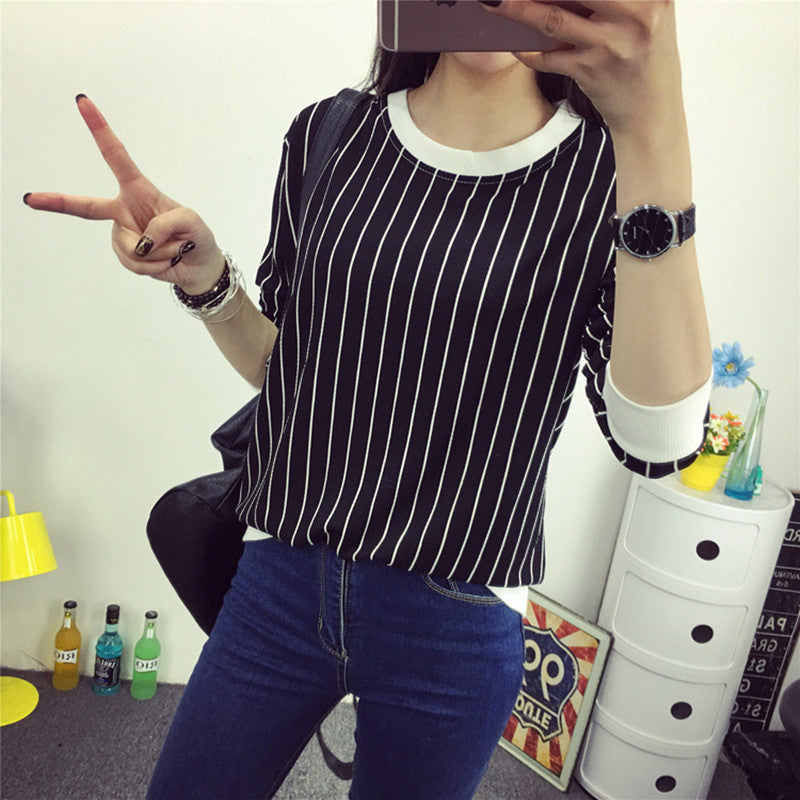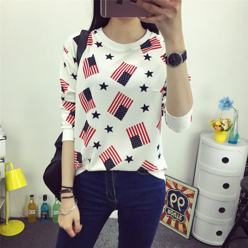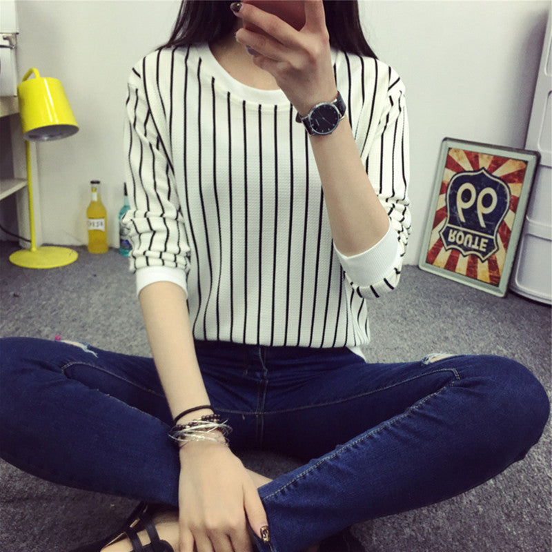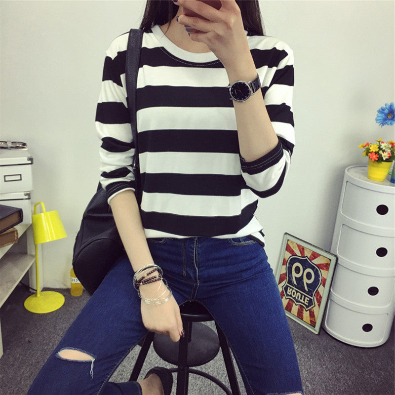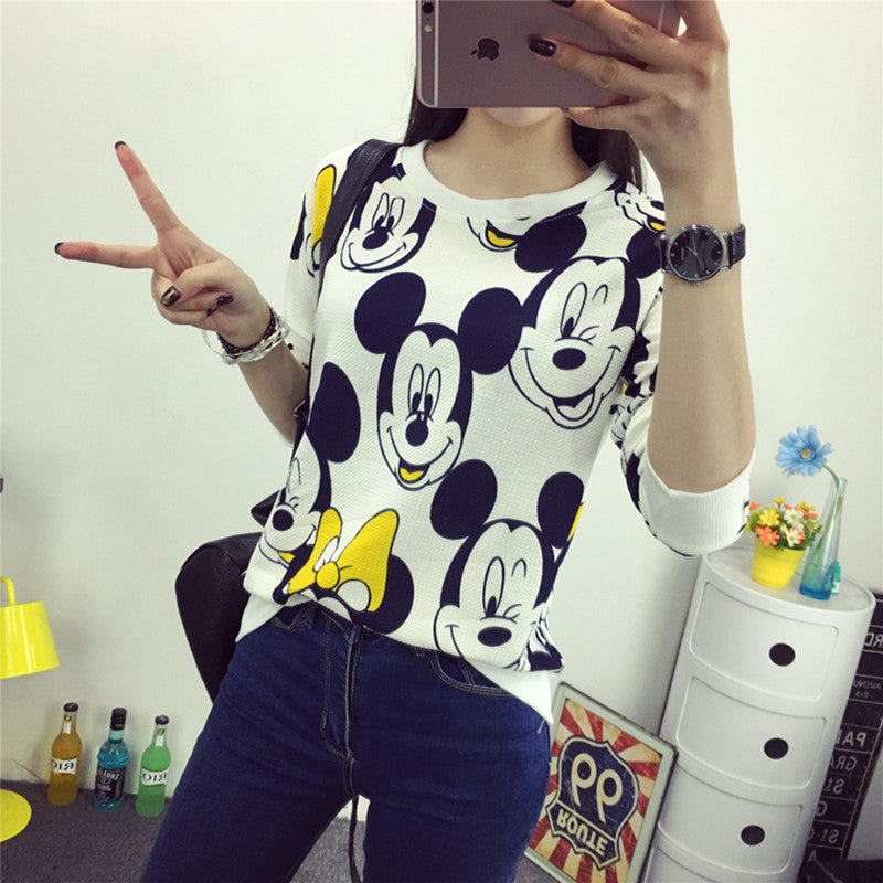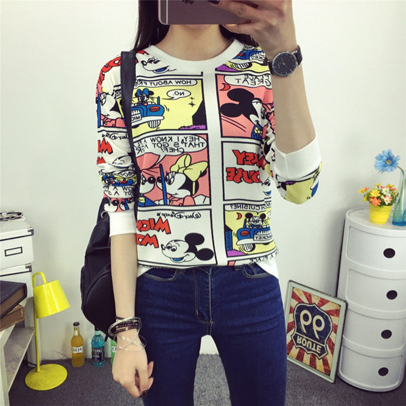 2016 New Summer Spring Sweatshirt T Shirt Women Tops Plus Size Loose Long-sleeved Cartoon/Stripe T-shirt Girls T Shirts Blusas