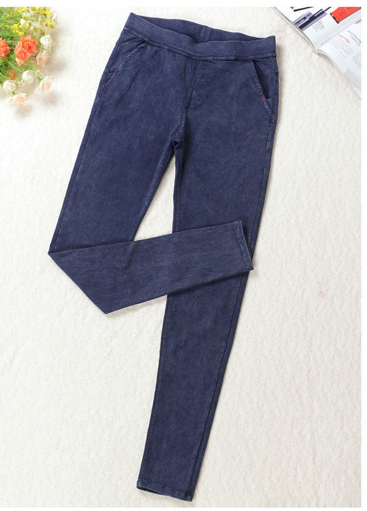 2016 New Women's Slanting Pocket Washed Jeans Leggings Pencil Pants Elastic Denim Leggings Skinny Jeans Jeggings Women Trousers