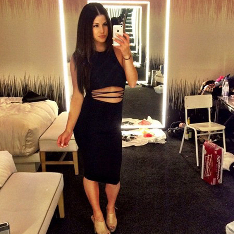 2016 Women Dress Summer Sexy Bodycon Bandage Dress Oneck Celebrity Mini Party Dresses Hollow Out Cross Women Sexy Vestidos Femme