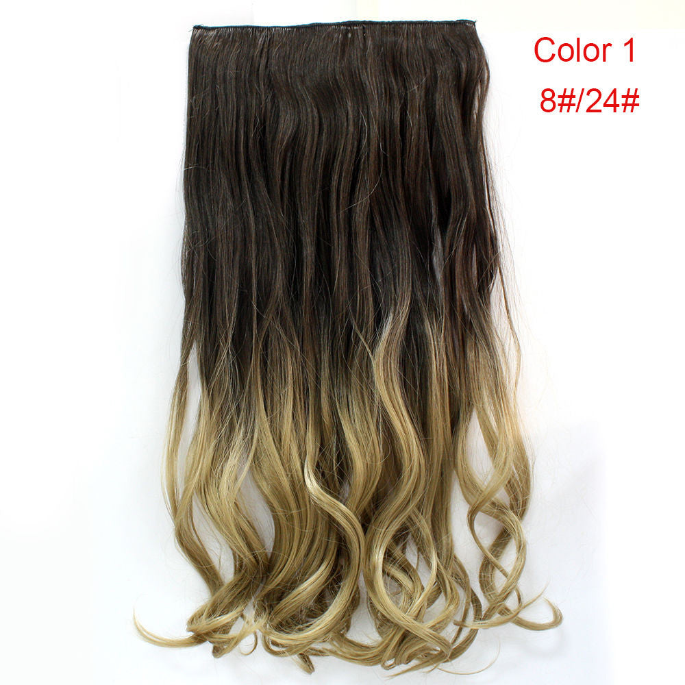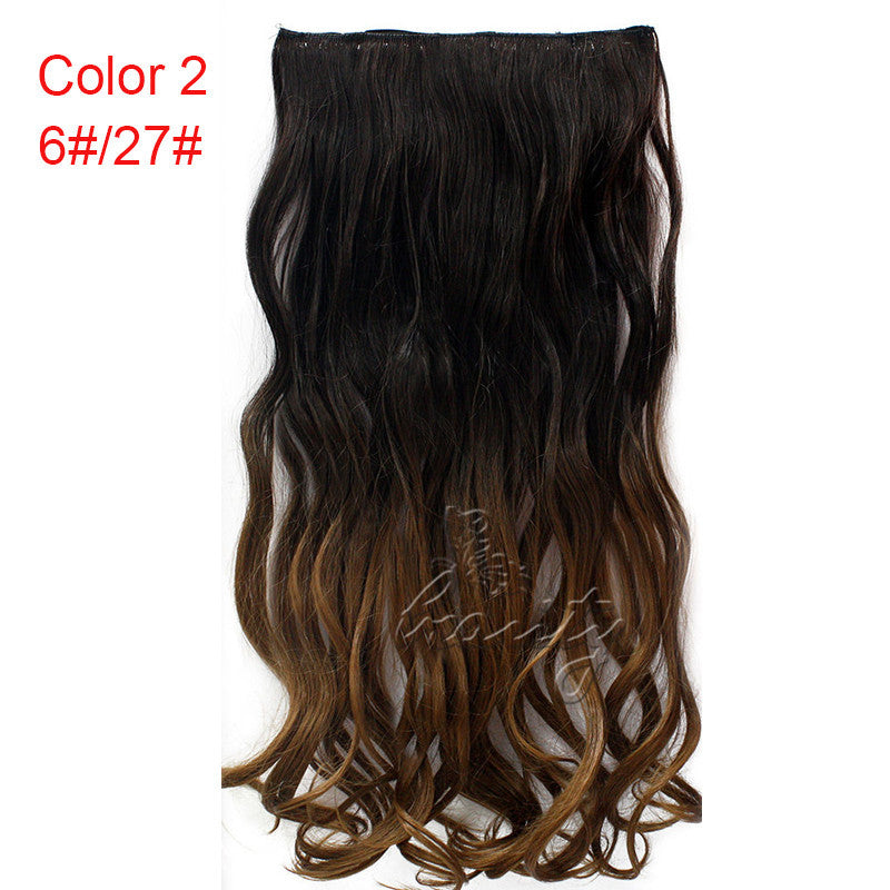 24" 60cm Wavy Curly Extension 5 Clip De Cheveux Ombre Piece Hair Extensions Cosplay Style Chocolate Brown to Sandy Blonde B40