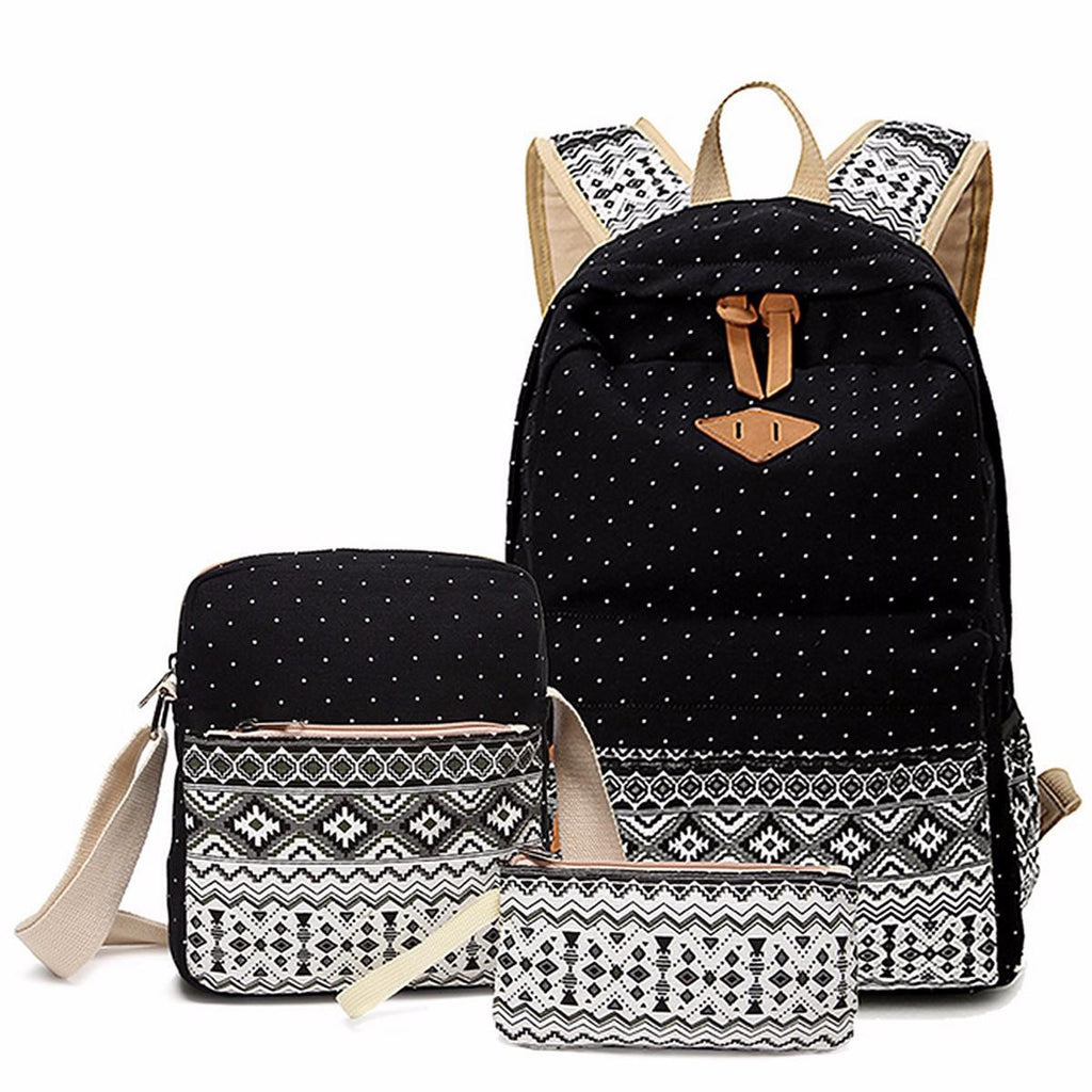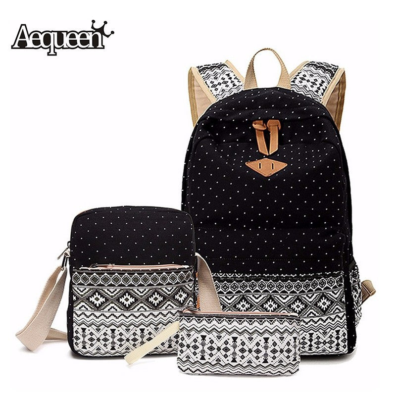 3 PCS/Set Women Backpack Canvas Printing School Bags For Teenagers Girls Backpacks Cute Rucksack Schoolbag Lady Bookbags Female