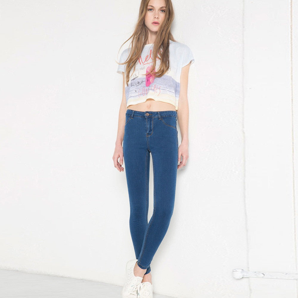 8907 Brief Style Women Slim Dark Blue Mid Waist Zipper Elastic Strech Classical Jeans Plus Size LAYS