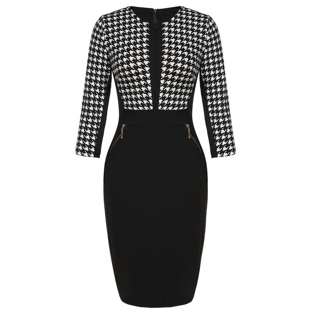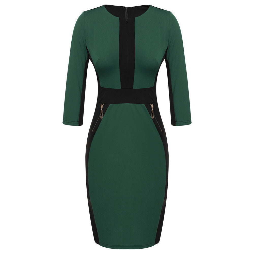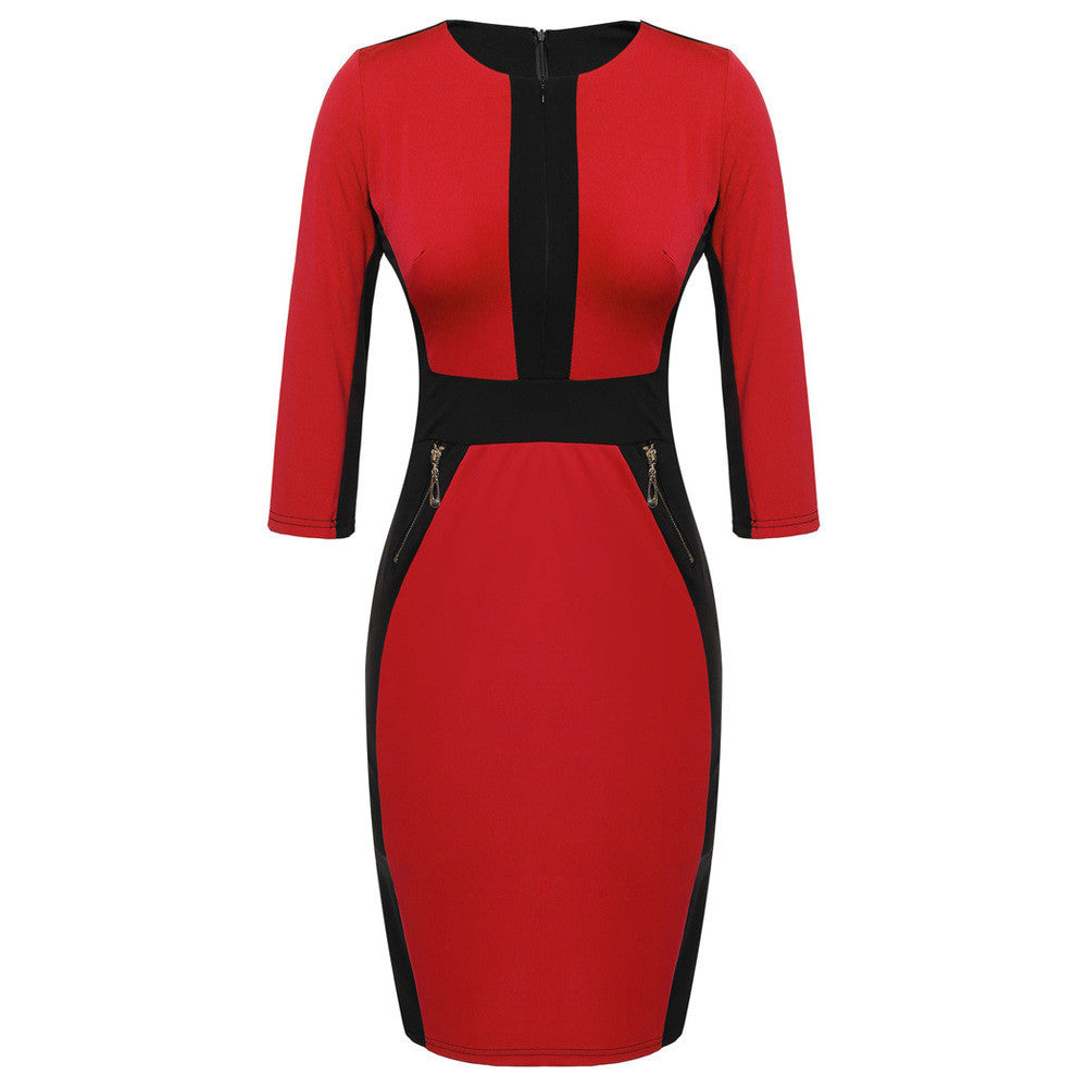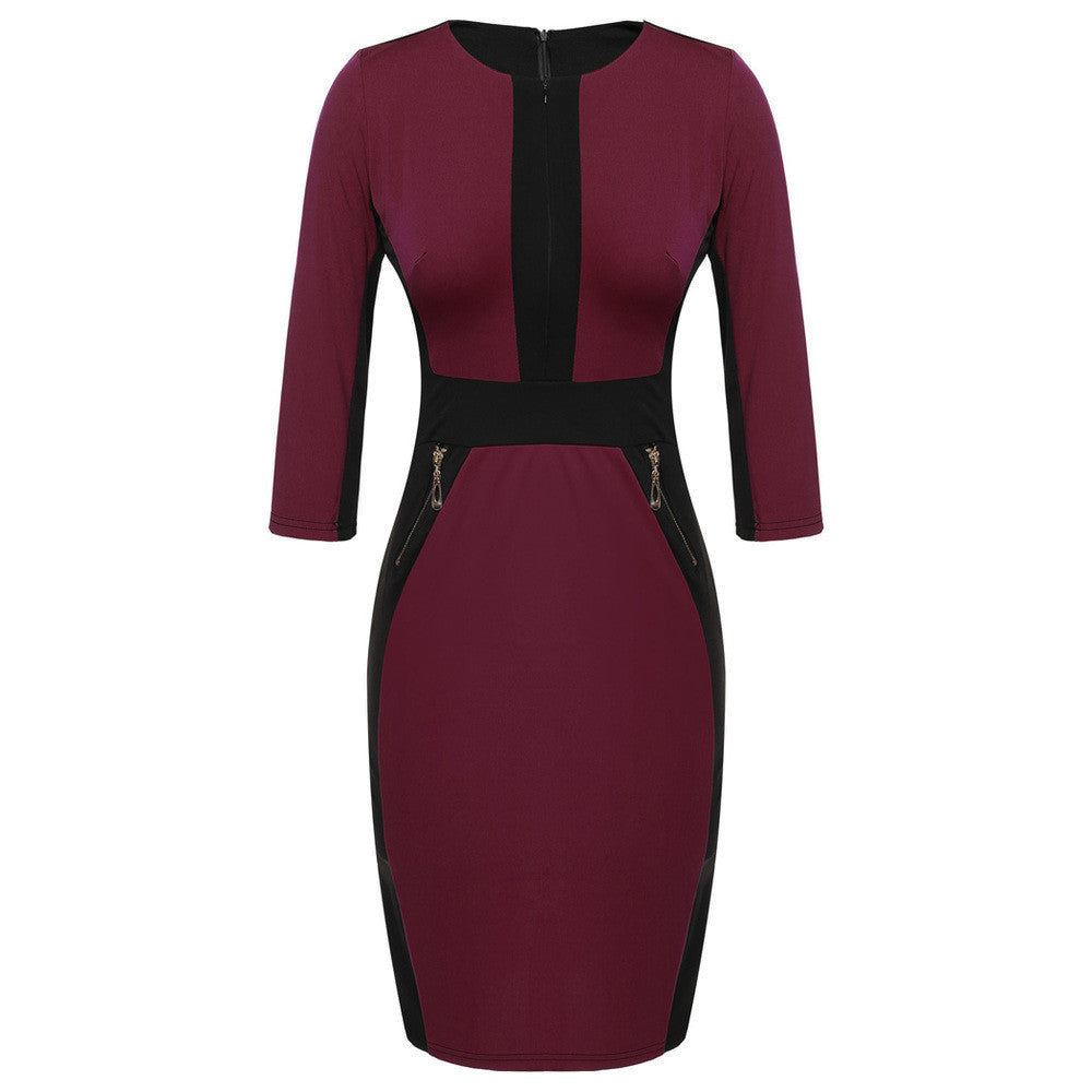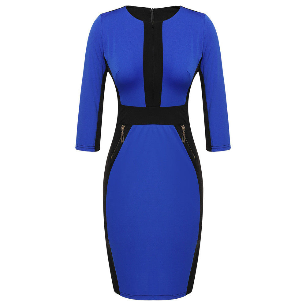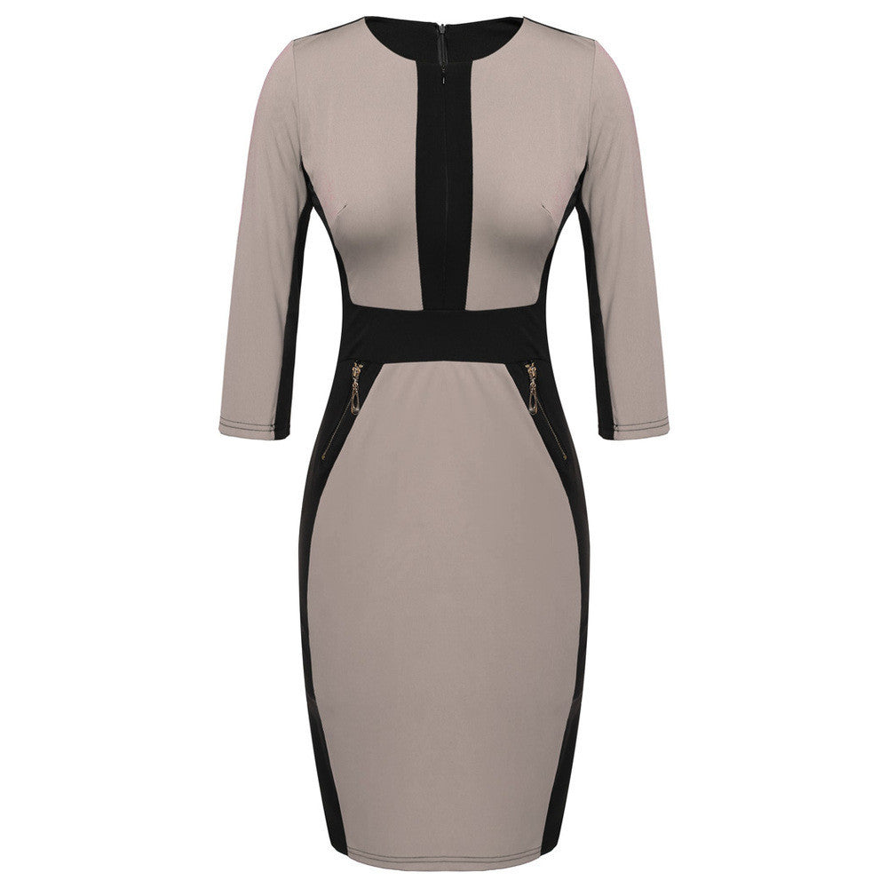 ACEVOG Brand Women Sheath Pencil Dress Fashion Patchwork Zipper Elegant Slim Bandage Bodycon Office Dresses Ladies Summer Autumn
