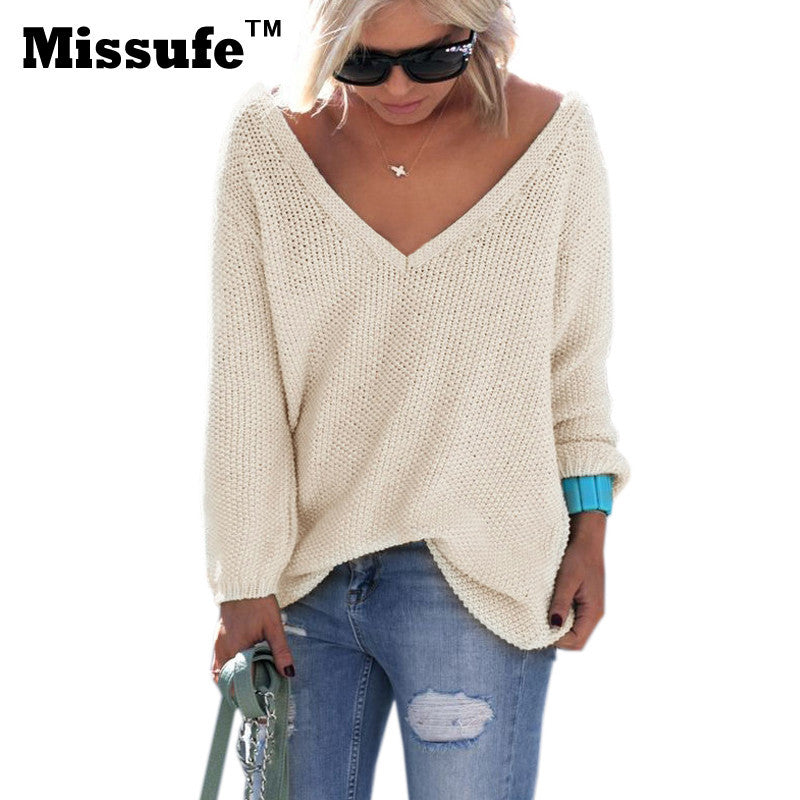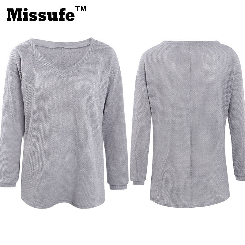 Autumn Winter Women Tops 2016 Sexy Casual Loose Long-sleeved V-neck Shirts Street Fashion Pullover Female Sweaters