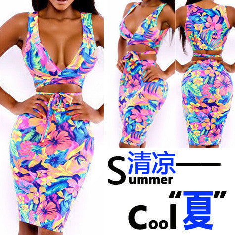 Bodycon Sexy Womens Deep V-Neck Print Party Bandage Twinset Dresses Vestidos 2016 New Arrival Fashion Summer Style Free Shipping