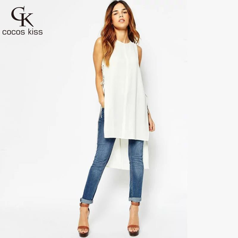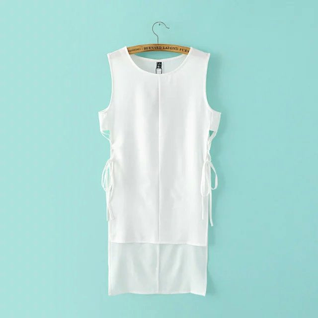 European style Length of front and rear waist Split ends Bandage dress 2016 new women sexy sleevelsee O-neck fashion dress