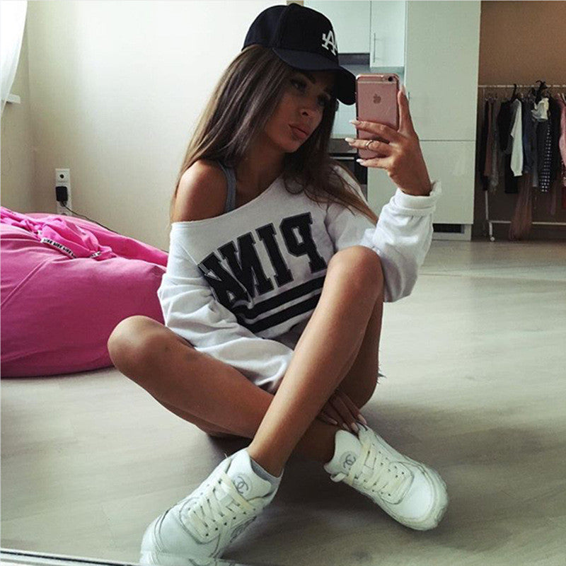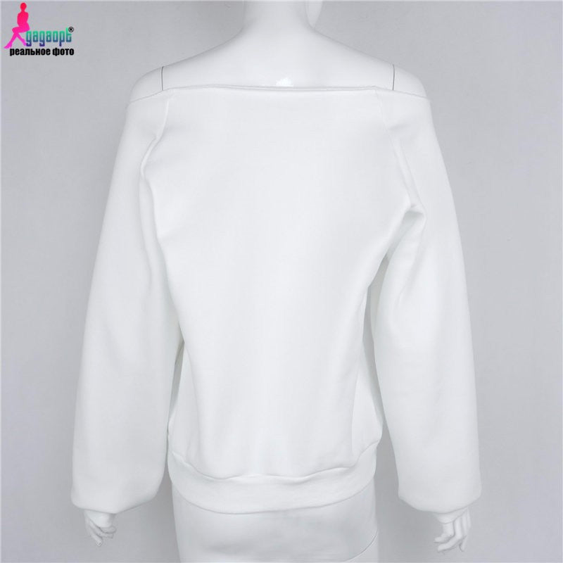 Gagaopt Autumn&Winter White Print PINK Women's Tracksuits Svitshot Strapless Hoodies Sweatshirt Women Sudaderas Mujer 2016