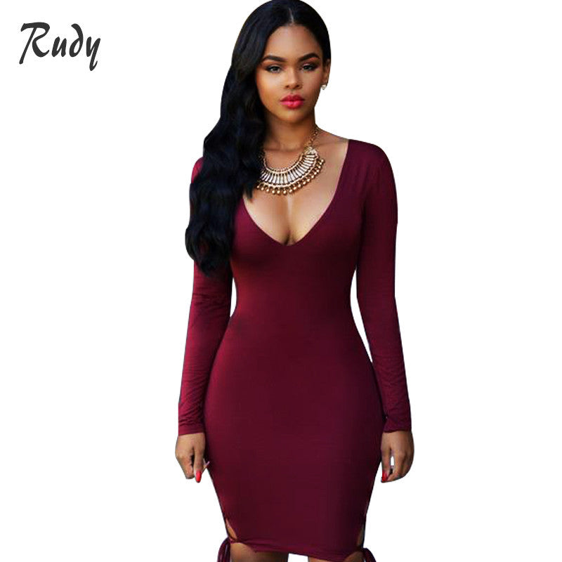 Style: Sexy & ClubSilhouette: SheathPattern Type: SolidSleeve Length: FullSleeve Style: RegularWaistline: NaturalNeckline: V-NeckDresses Length: Knee-LengthMaterial: Cotton,Polyester,SpandexDecoration: Hollow OutSeason: WinterModel Number: DressGender: Women