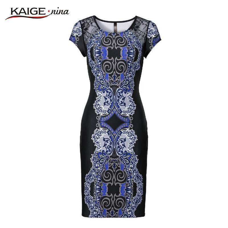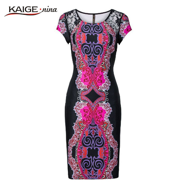 Kaige.Nina Autumn Sexy O-Neck Lace Dress Women Vestidos Casual Mini Dress Short Sleeve Print Plus Size Slim Dress Vestido 2409