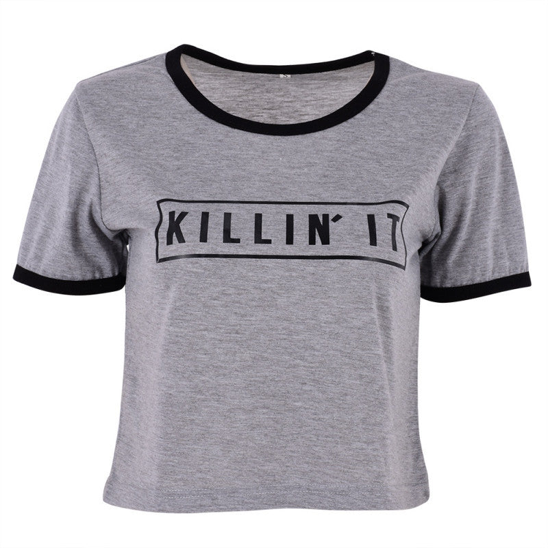 Killin It Letter Print Fashion Women Summer Top Letter Print Casual T shirt 2016 Sexy Slim Funny Top Tee Short Sleeve Shirts