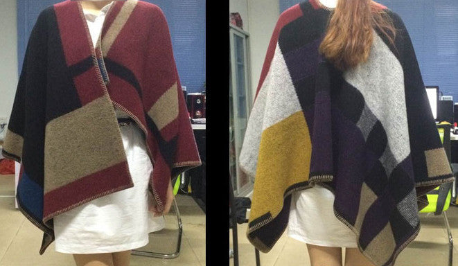 Oversized Sweater Cardigan 2015 Olivia Palermo Runway Catwalk Street Snap Knitted Cardigan Plaid Cape Poncho Shawl Women Lady
