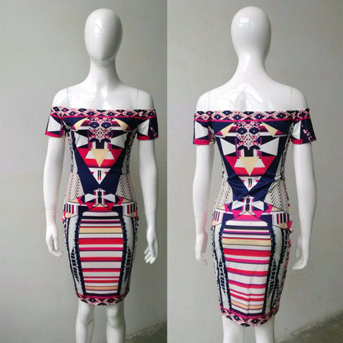 S-XXL new bohemian tribe print summer dress 2016 sexy slash neck bandage bodycon party dresses plus size women clothing